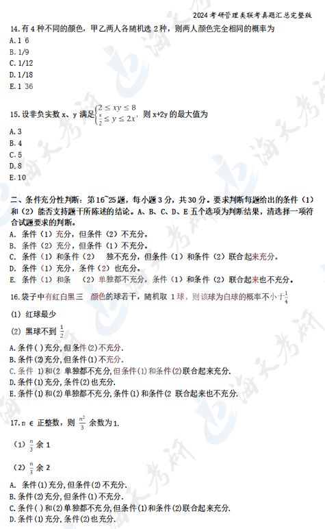 以上就是海天考研网为各位考生整理的2024考研管理类综合能力真题汇总完整版,持续为考研学子更新考研政治、数学、英语、396考研真题及答案解析等,各位考生可以根据自身需要关注收藏,及时查看完整版2024考研真题及答案解析。